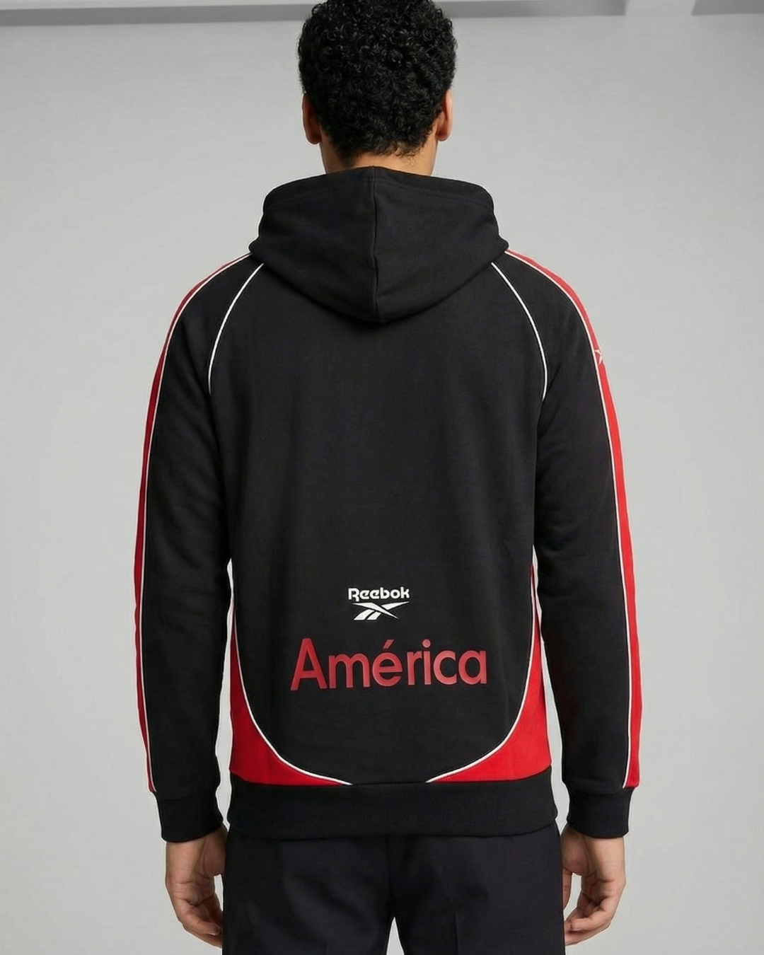 Hoddie Perchado Combinado – America – Negro / Rojo