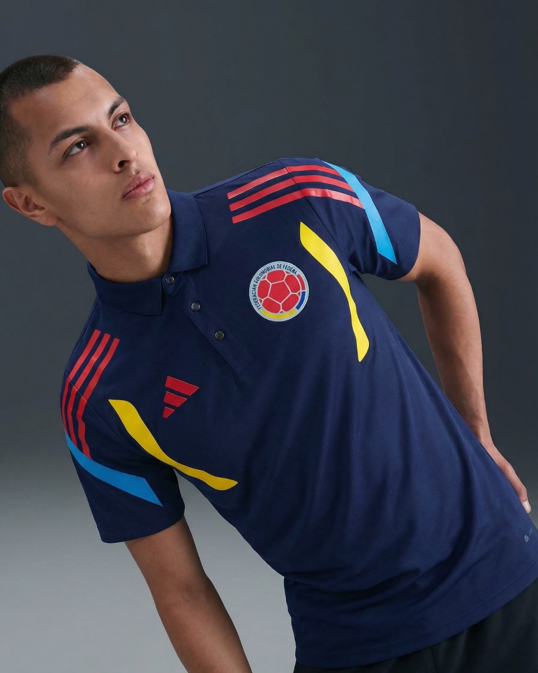 Tejido Deportivo Premium: Transpirable, suave y con colores vibrantes que representan a la Selección Colombia.